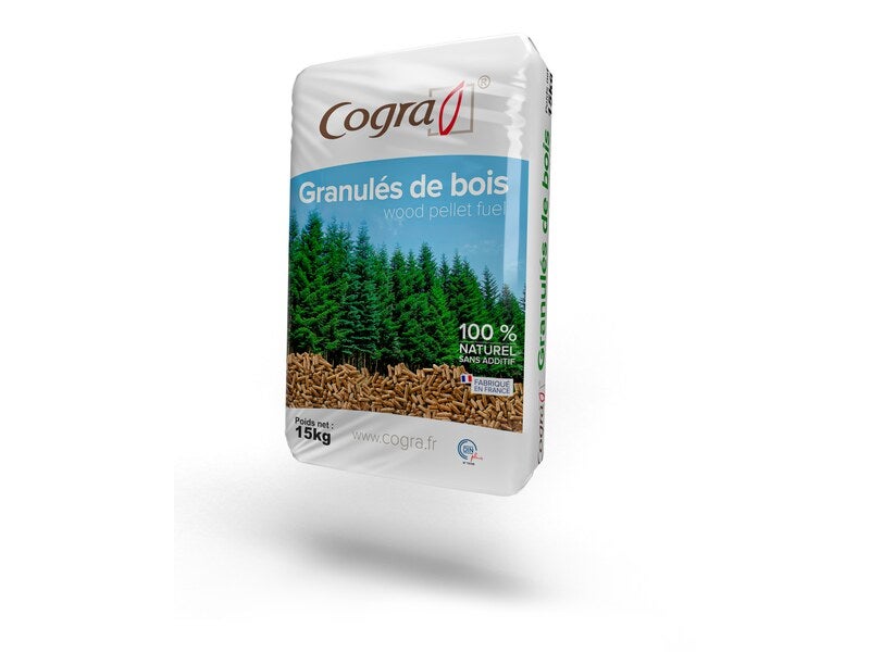 Les granulés de bois Cogra sont français et répondent aux critères de la norme DIN Plus mais également à la norme EN Plus A1. Ils sont 100 % naturels, 100 % résineux, sans colle ni additif. Ce pellet vous assure une bonne combustion avec son pouvoir calorifique élevé mais aussi une tranquillité car vous devrez nettoyer votre poêle moins souvent, grâce à des taux de cendres et de poussières très bas.